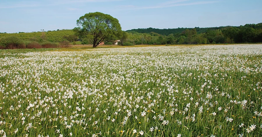 На площі майже 250 гектарів росте величезна популяція дикого вузьколистого білого нарциса. Фото: vidviday.ua