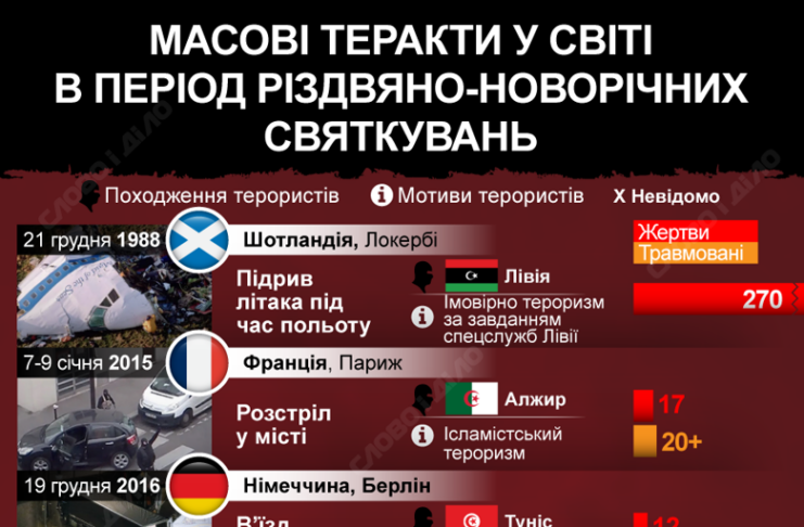 Найгучніші теракти у світі у період святкувань Різдва та Нового року
